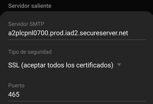 En la sección de ajustes de salida, ingresa la dirección a2plcpnl0700.prod.iad2.secureserver.net en el campo de Servidor SMTP. Los demás campos puedes dejarlos con el valor que tengan por defecto.