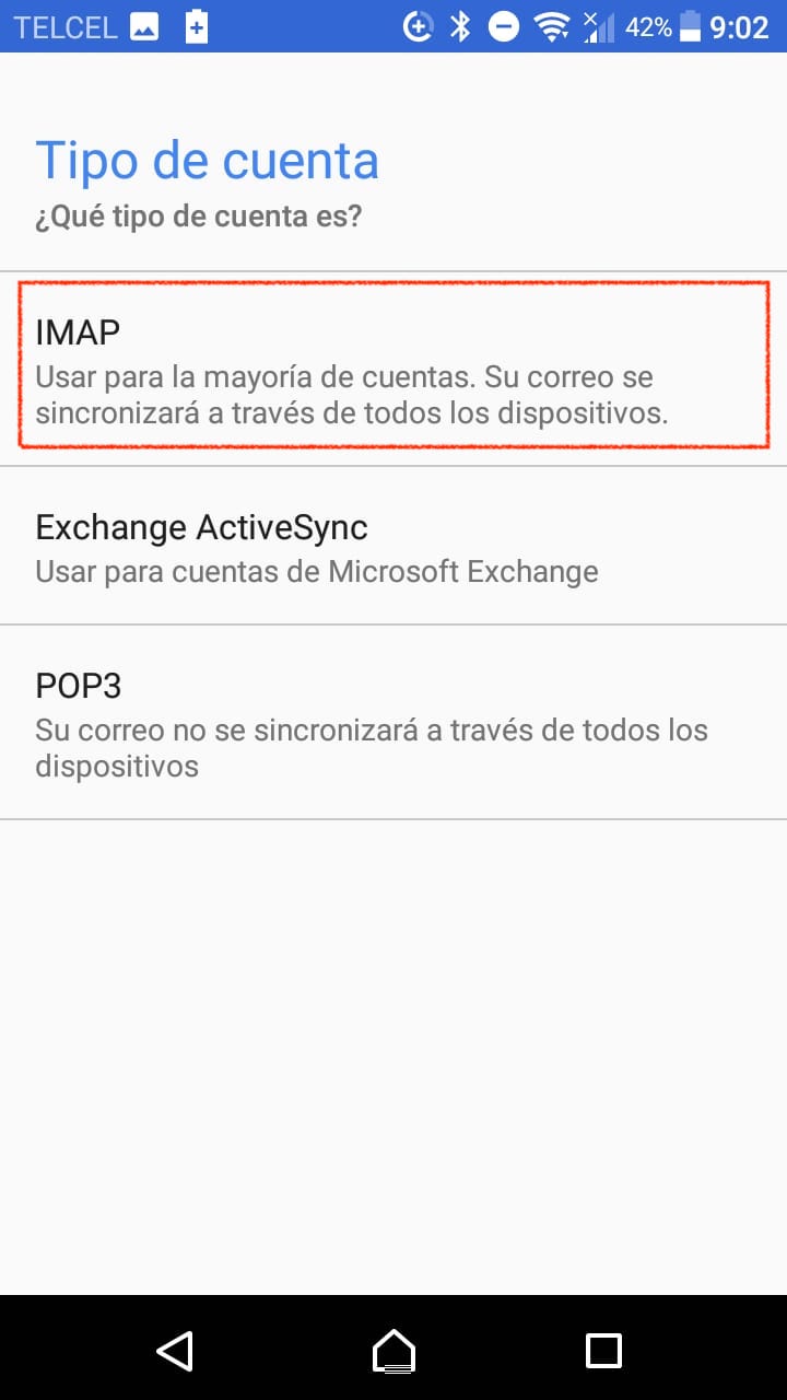 El tipo de cuenta que vas a dar de alta es de tipo IMAP.