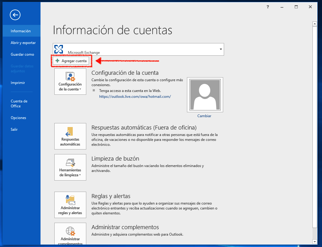 Dentro de la aplicación, dirígete al menú Archivo y selecciona la opción "Agregar cuenta".