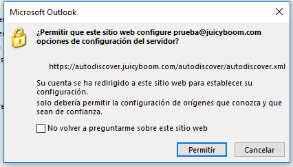 Outlook te solicitará permiso para leer el archivo de configuración en el servidor. Da clic en Permitir.